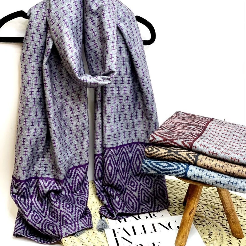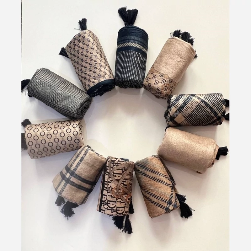 شال نخی پاییزی منگوله دار