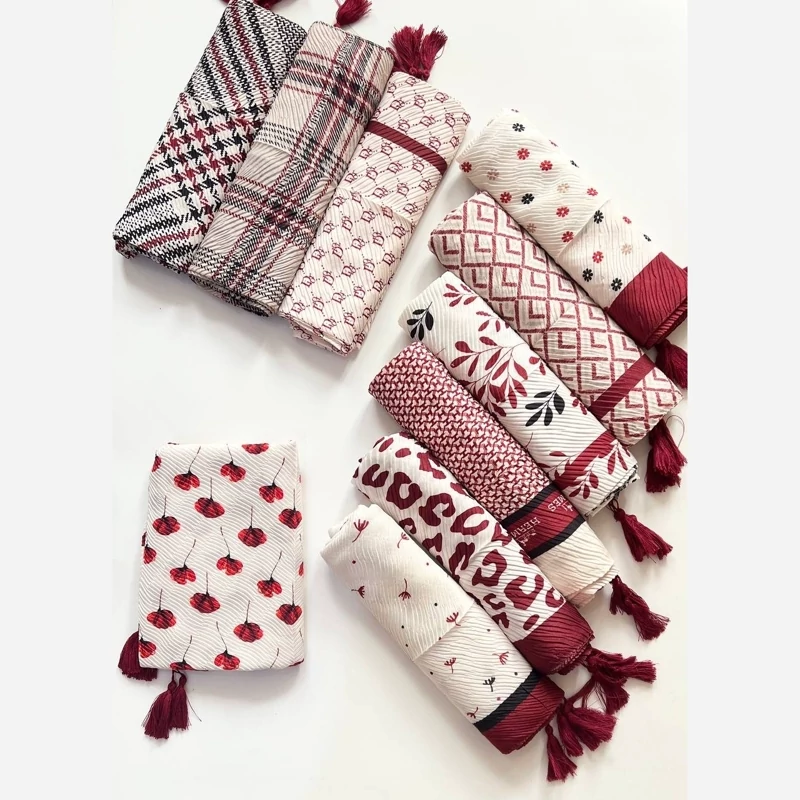 شال پلیسه پاییزه منگوله دار