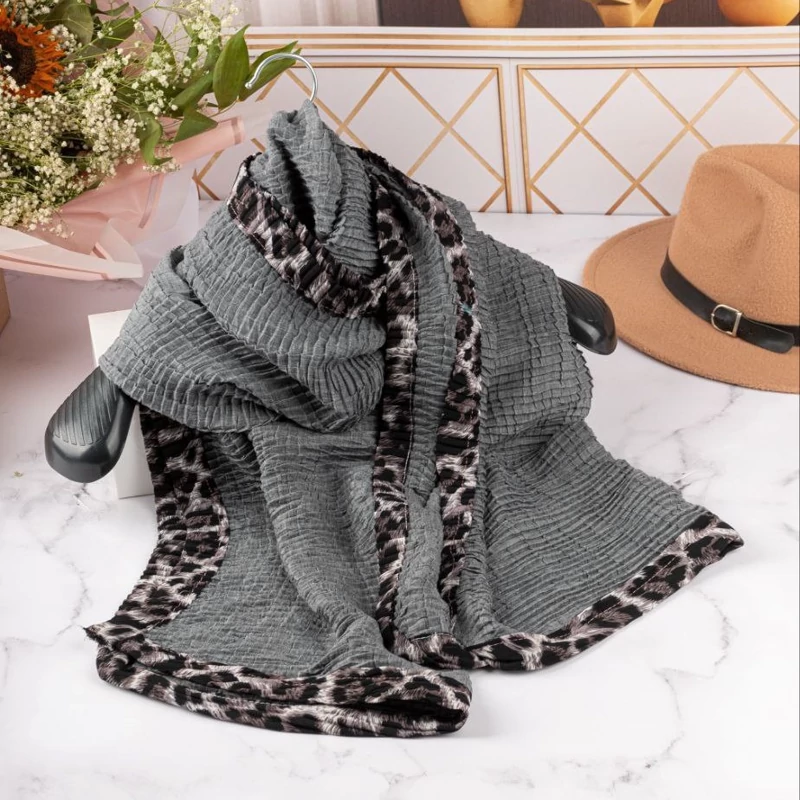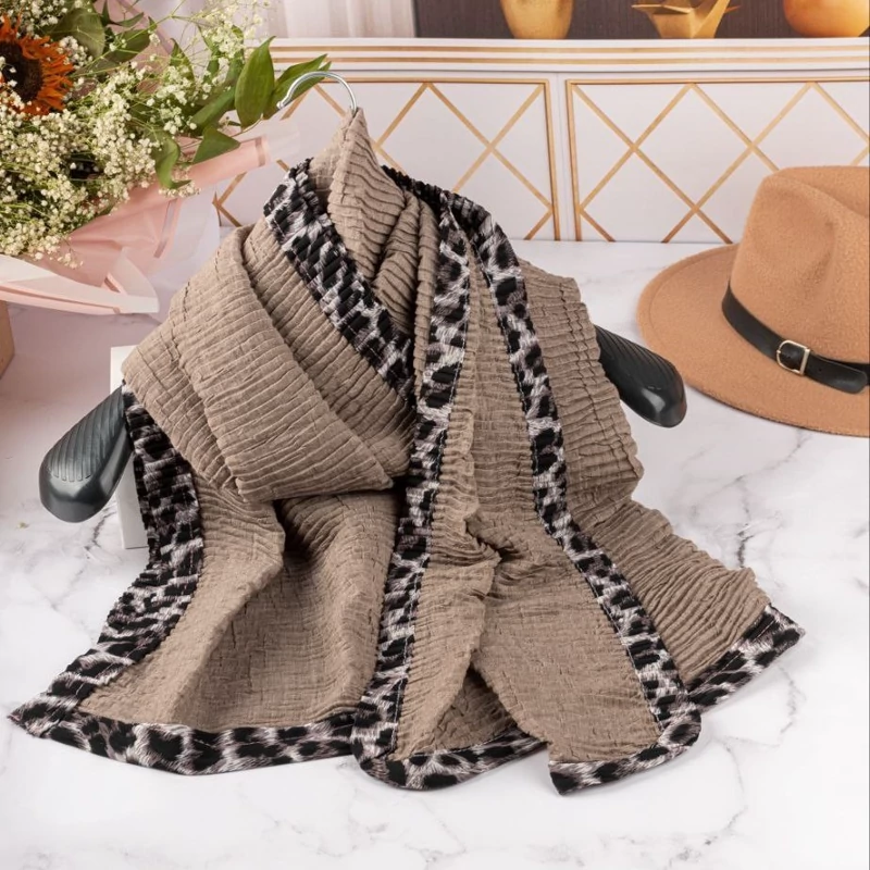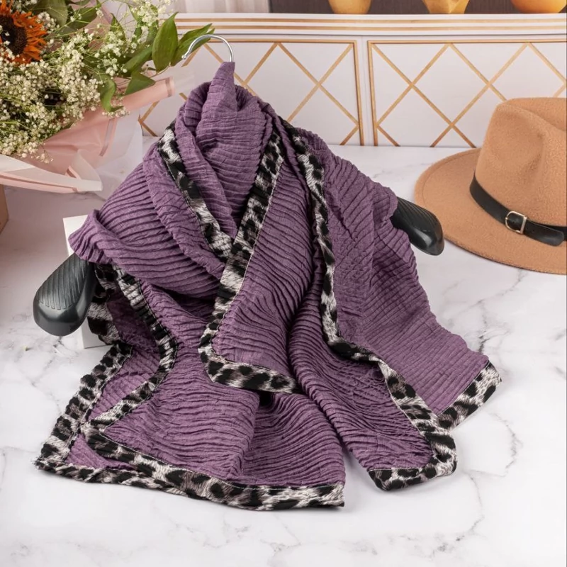شال پلیسه دور حاشیه پلنگی ابعاد : ۷۵ × ۲ با رنگبندی جذاب مناسب ۴ فصل بهترین کیفیت و نازل ترین قیمت