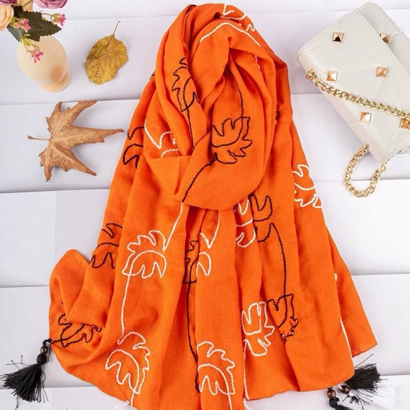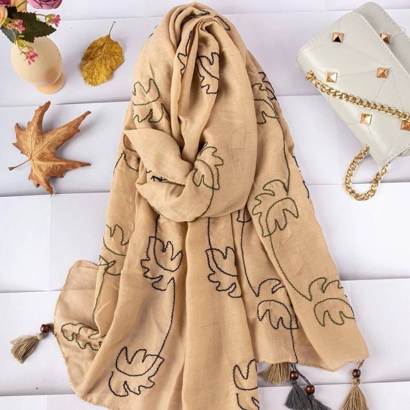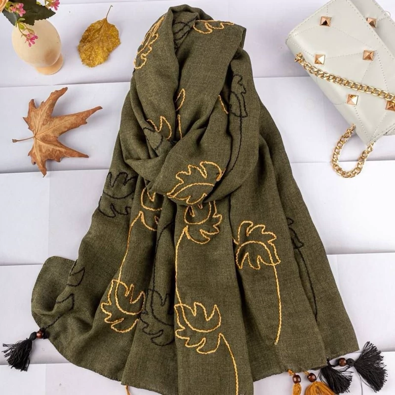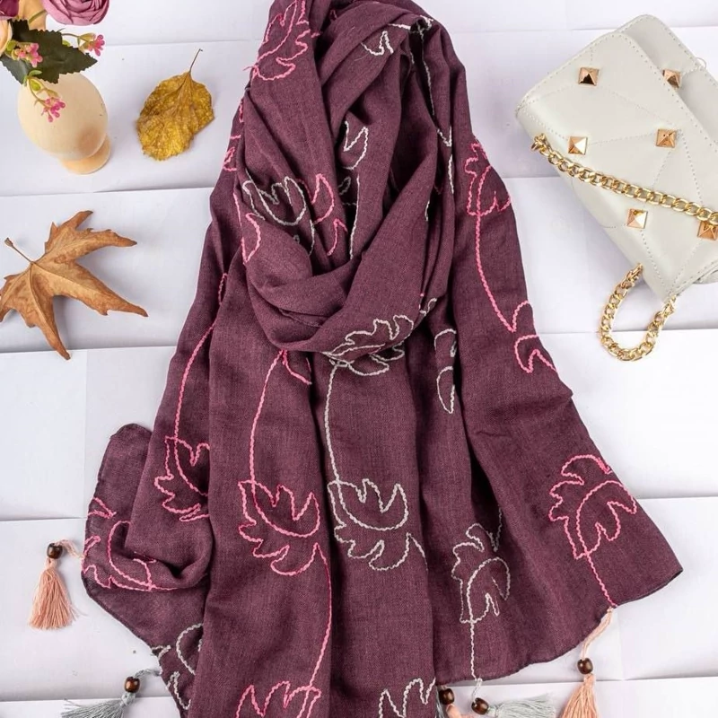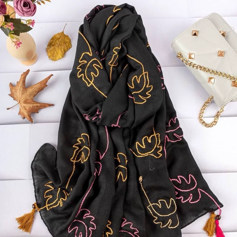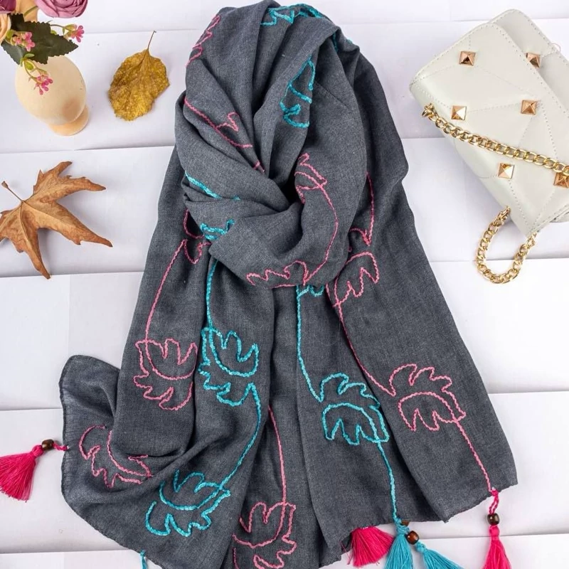 شال خامه دوزی شده ابعاد : ۷۵ × ۲ با رنگبندی جذاب و متفاوت ایستایی روی سر عالی